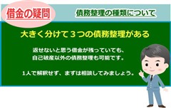 一般的には3つの種類があるのですが、コレ以外でも過払い金請求なども含めると借金の整理には複雑で面倒な事が沢山あります。