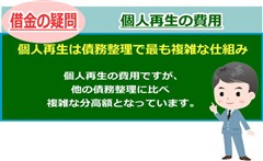 個人再生は、債務整理の中では最も費用がかかる方法です。手続きが複雑ですので手間がかかる為です。また、個人再生を行えるかどうかという部分も、自分の判断では決めることが難しいですので、債務整理に慣れている弁護士や司法書士にお願いする事が必須になります。
