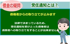 こういった行為を止める効力があるのが受任通知です。受任通知を受け取った業者は、借金をしている人に直接の取り立てを行うことが出来なくなります。法律で決まっているからです。