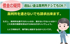 過払い金請求は裁判所を通してでなければ返還されないのかという問い合わせがありましたので、そのことについて調べてみました。